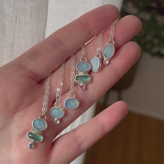 ✧ Solid sterling silver + Australian opal with pink tourmaline or green peridot
