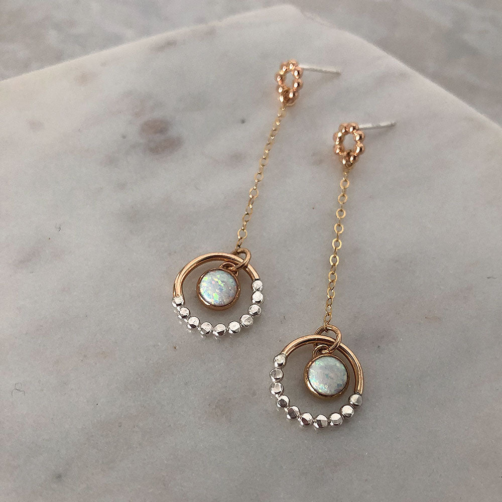 Mixed Metal Prism Circle Opal Dangle Earrings